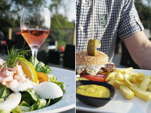 Låter helt underbart att bo så där nära havet. Räksallad är inte fel, och hamburgaren såg mumsig ut den med.