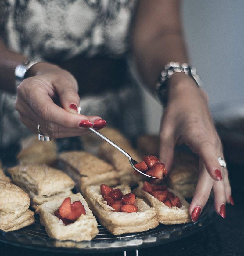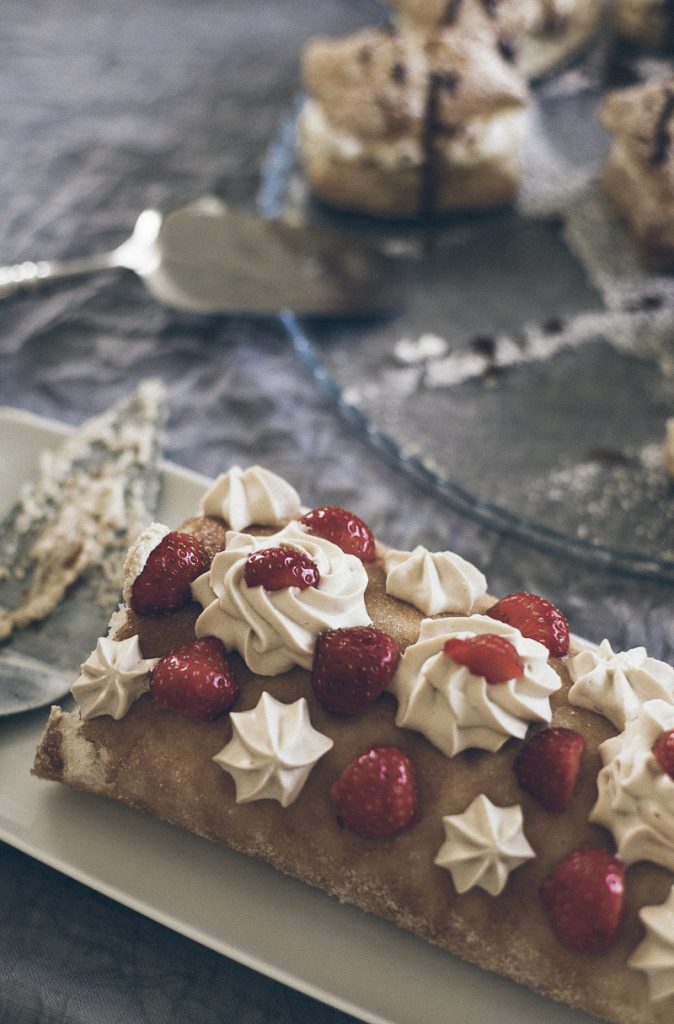 Och jag svängde ihop några tårtor på förmiddagen, det blev jordgubbs och vaniljbakelser, kladdkaka med smak av fudge havssalt och en rulltårta med en salt karamellfyllning.