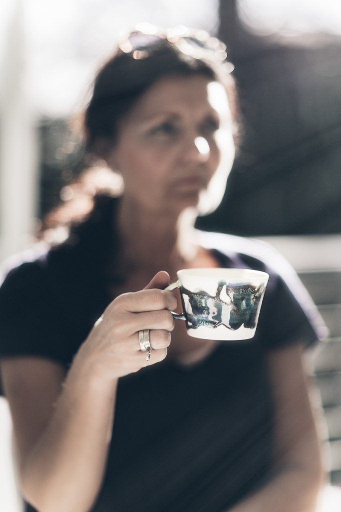 Efter några timmar under täcket, kunde jag i alla fall njuta av kaffe i solen i min nya, fina kopp från Frida Eklund