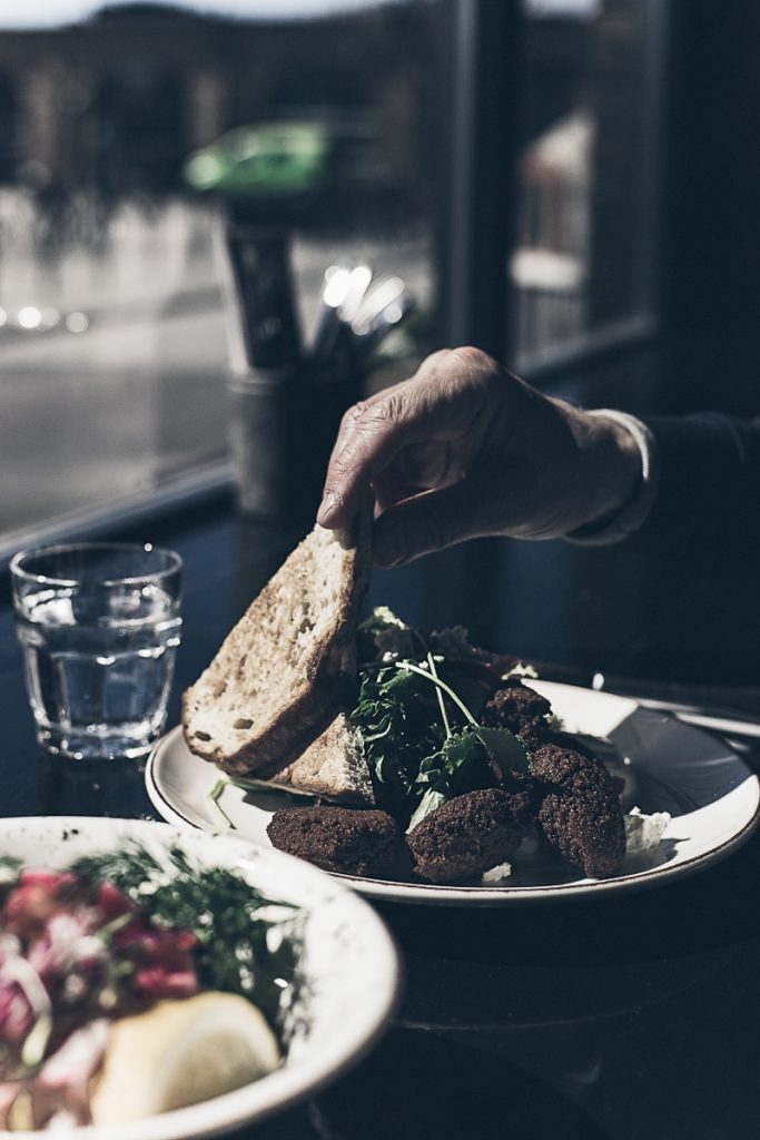 Jag tog räkmacka utan macka, he, he och Mr C tog något med falafel och jisses så smarrigt det var.