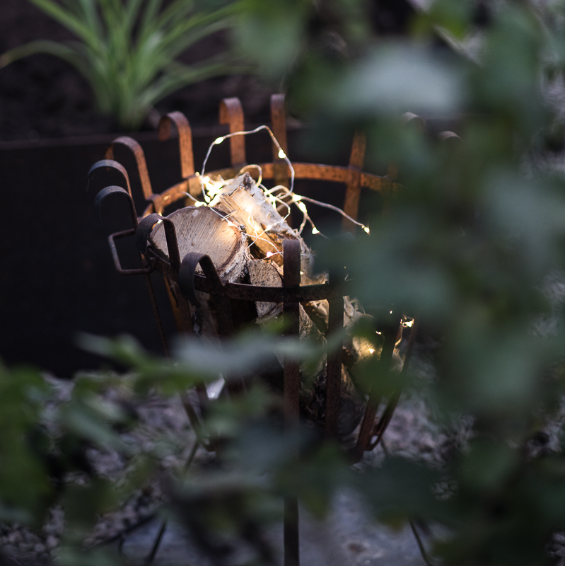 Och när man inte får elda…..lägger man en ljusslinga i vedkorgen, går precis lika bra……