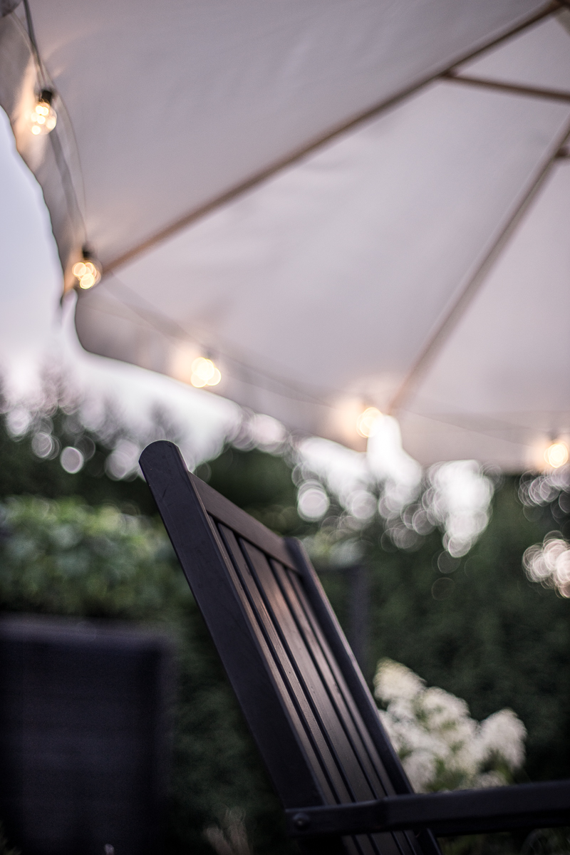 Ljusslingan i parasollet blev bara hur bra som helst och ger ett sådant där magiskt ljus på kvällen.