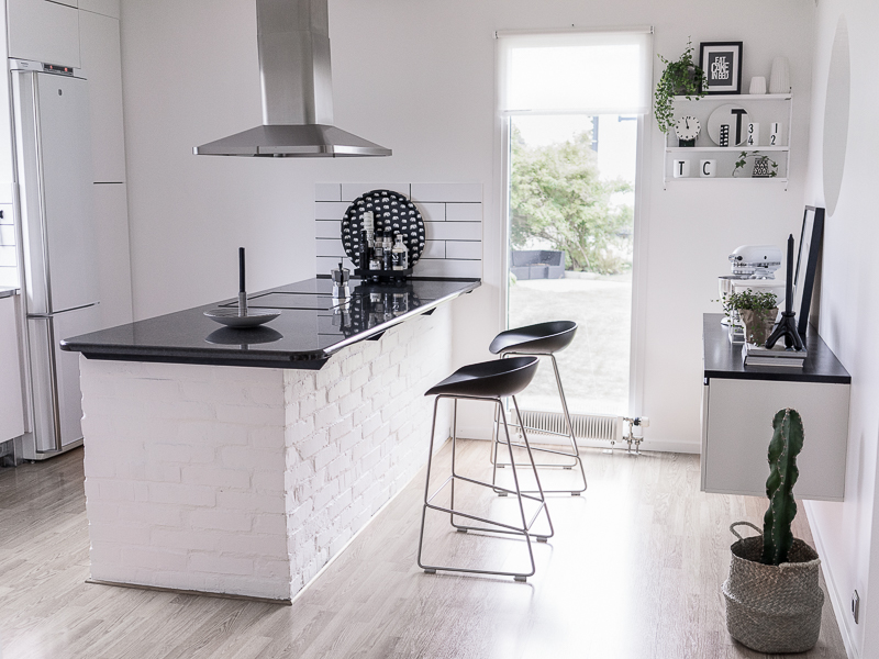 Själva köksön har Mr C murat av återvunnet tegel som jag har målat vitt.