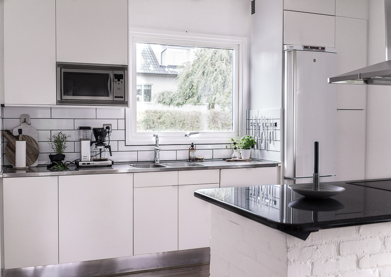 Diskbänken har jag matchat med rostfria luckor på den här sidan av köket, vilket förstärker den råa känslan av det industriella och sen det bästa investeringen i hela köket, granitskivan.