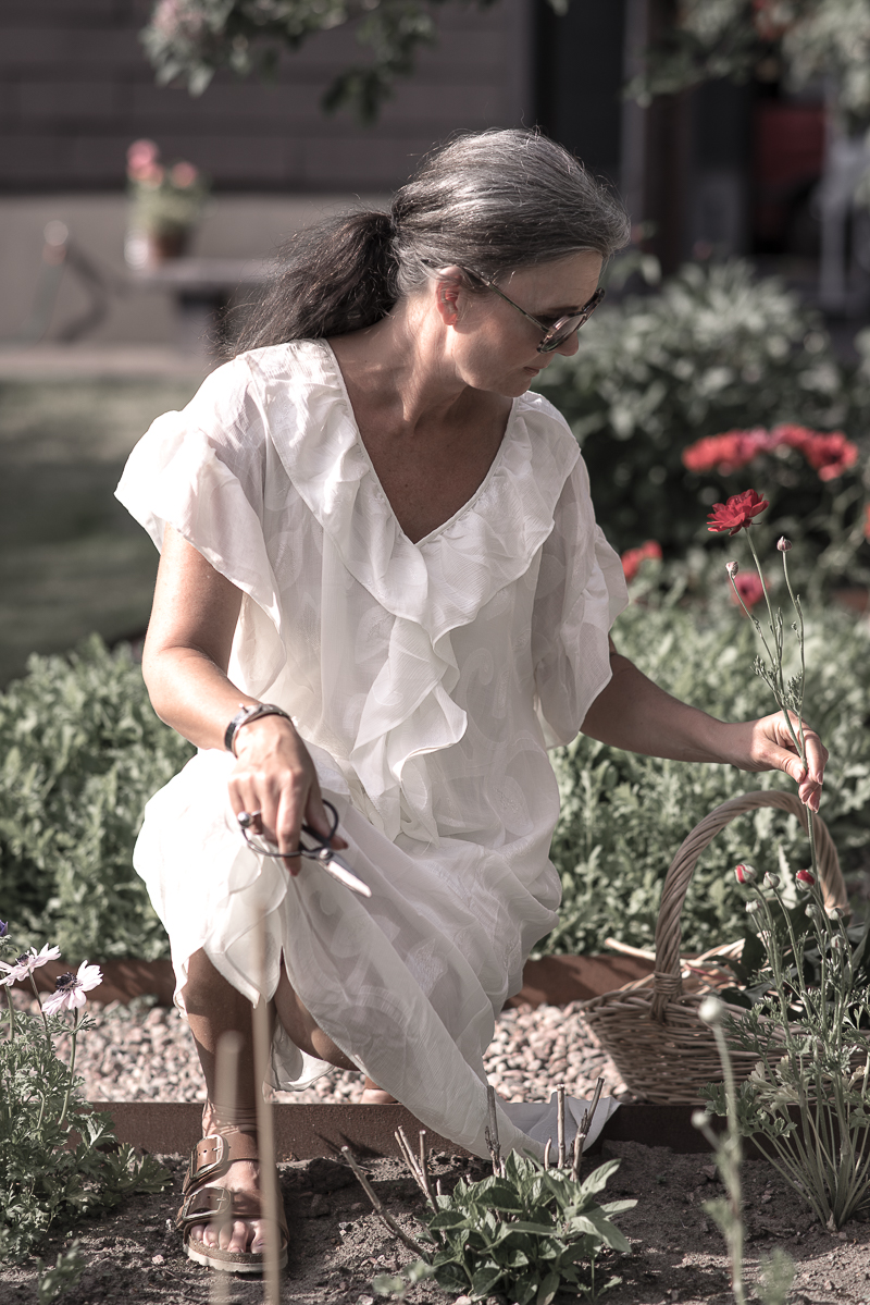 Ljuvliga bilder och kaftanen är ju underbar. Bor lite norröver och här är syrenerna i full blom och pionerna börjar knoppa. Så vackra blommor. Har haft underbart väder den senaste veckan men idag regnar det men vad gör det när en kan sitta inne och mysa samtidigt som man kan kika in hos er och er fantastiska trädgård. Ni har verkligen lyckats skapa en egen oas. Önskar er den bästa midsommaren och mysigt trädgårdshäng. Var rädd om er och ha en fin dag.