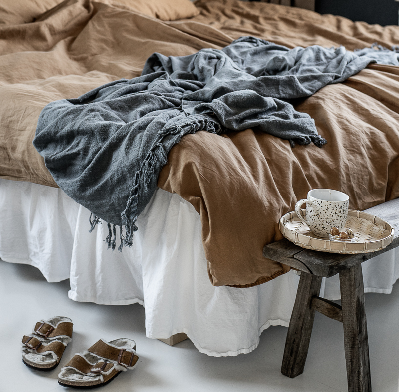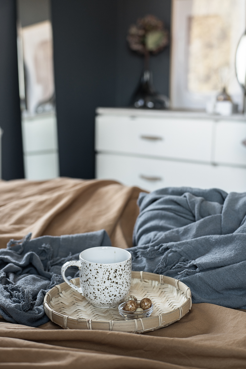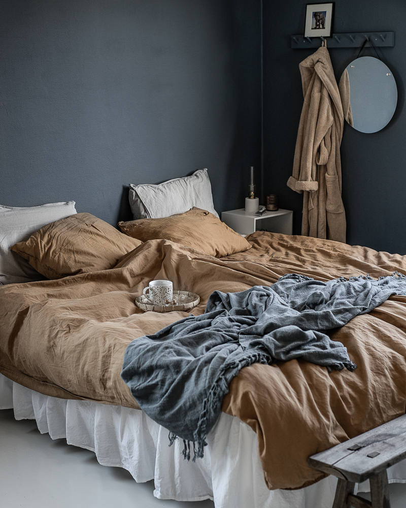 Kanske är det för att den blå färgen för tankarna till svalkande vågor och en lugnande himmel som gör att den ger en avslappnande stämning i vårt sovrum.