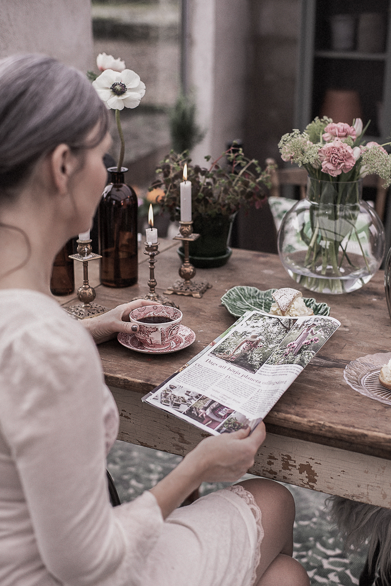 Mysigt att tända massor av ljus och höra kaminen spraka när jag sitter här i växthuset och läser artikeln.