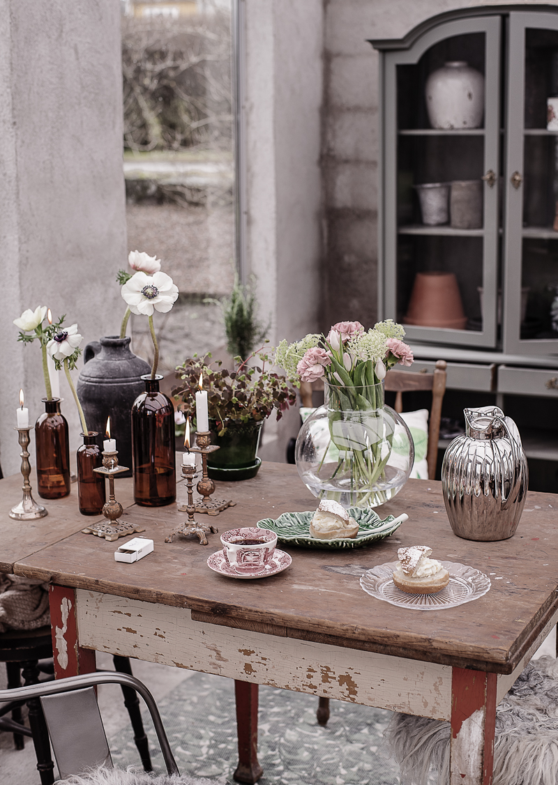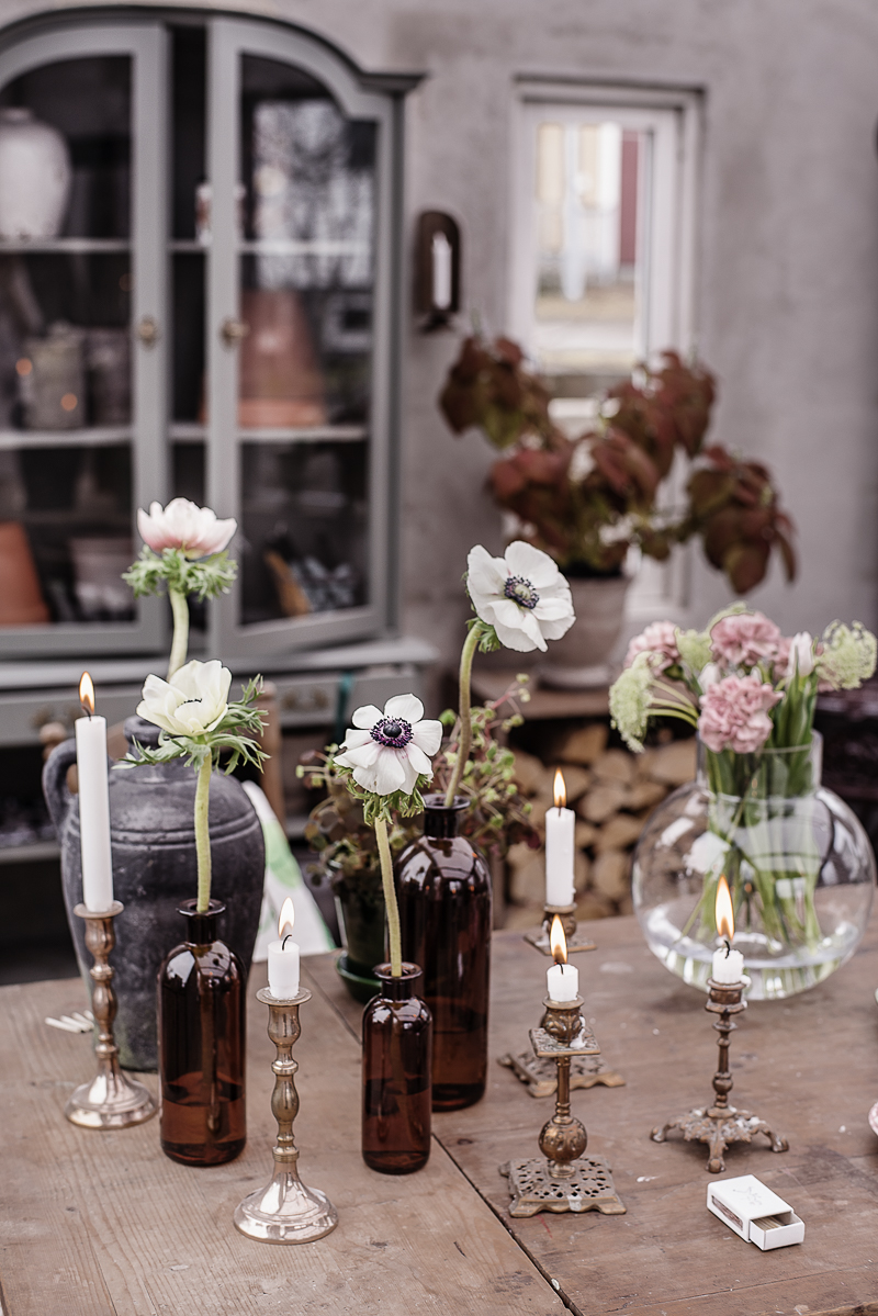 Flaskorna anemonerna står i har jag köpt hos Rusta för inga pengar alls, verkligen ett fynd.
