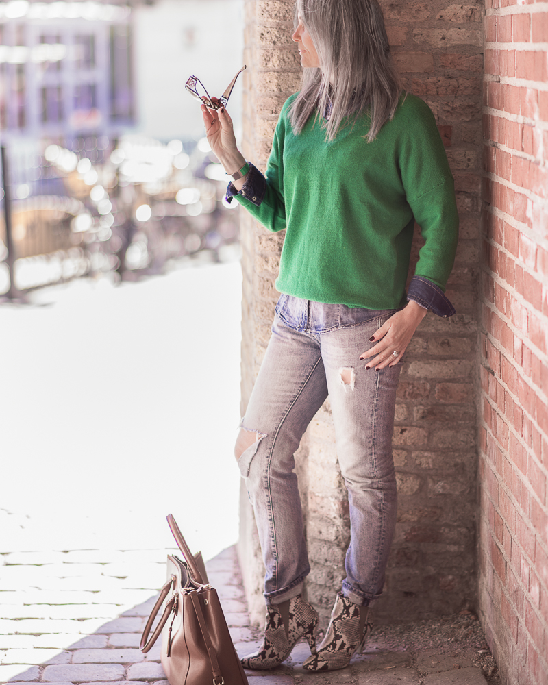 Sen fastnade jag för den här underbara gröna tröjan och den fräscha jeansskjortan.