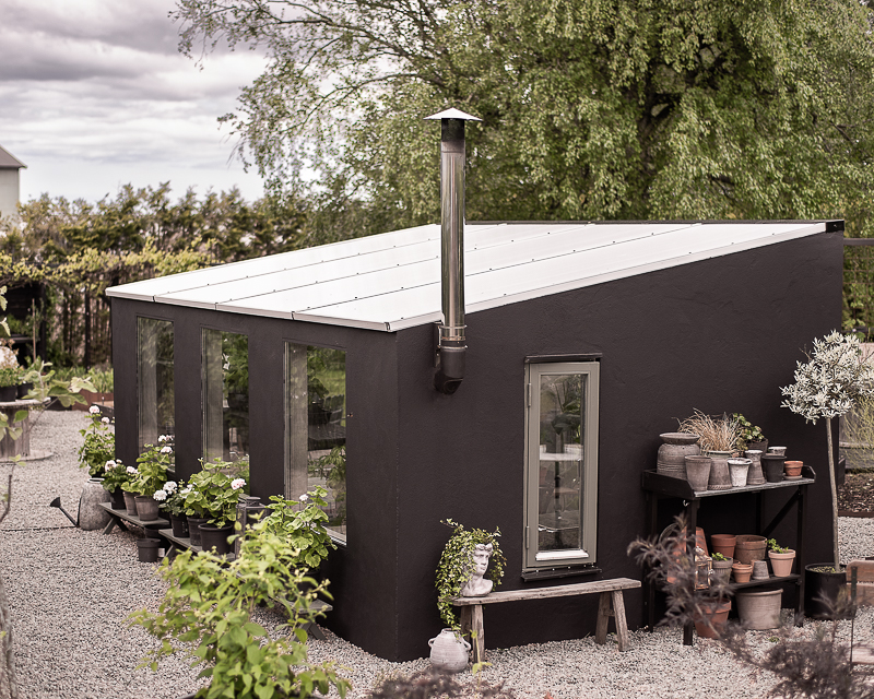 Charmigt och väldans coolt, men vi som också ska ha växthuset som fotostudio hade slitit vårt hår över på tok för starkt ljus plus att det hade blivit som en bastu där inne både för mig och alla växter under sommarhalvåret och iskallt på höst och vinter.