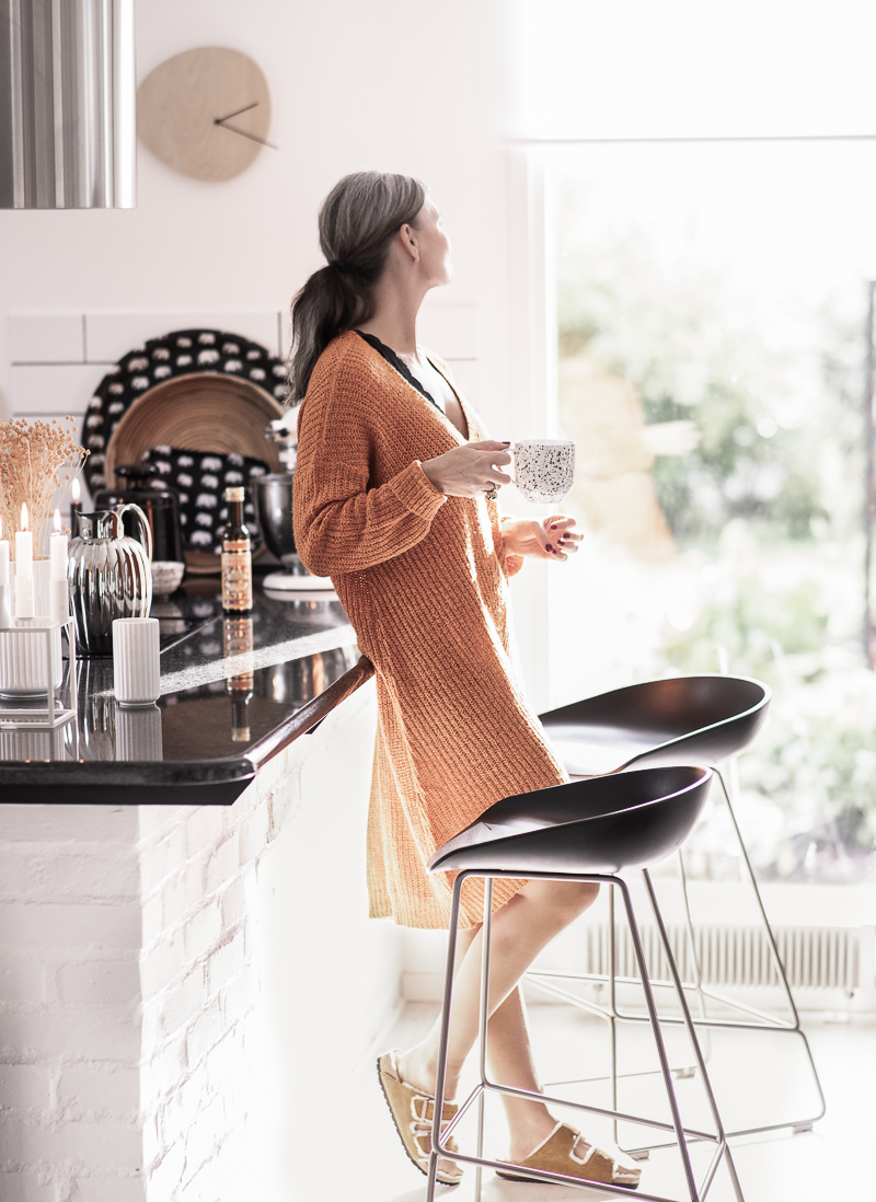 Efter några timmar ute är det skönt att svida om till en gosig klänning och dricka hett kaffe.