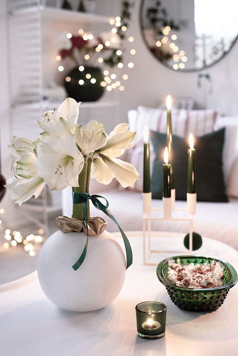 För hon är ståtlig och otroligt vacker, amaryllisen, men som jag sagt tidigare vara lite knepig att få till i olika vaser.