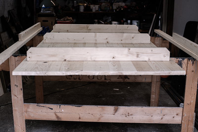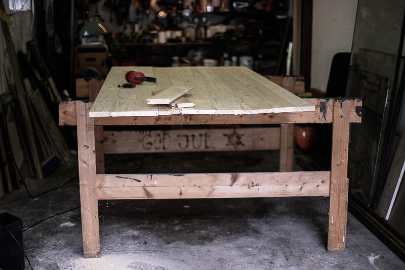 I förrådet fanns det jag behövde, även om plankorna till bordsskivan var av blandad bredd och tjocklek så gick de att att pussla ihop.