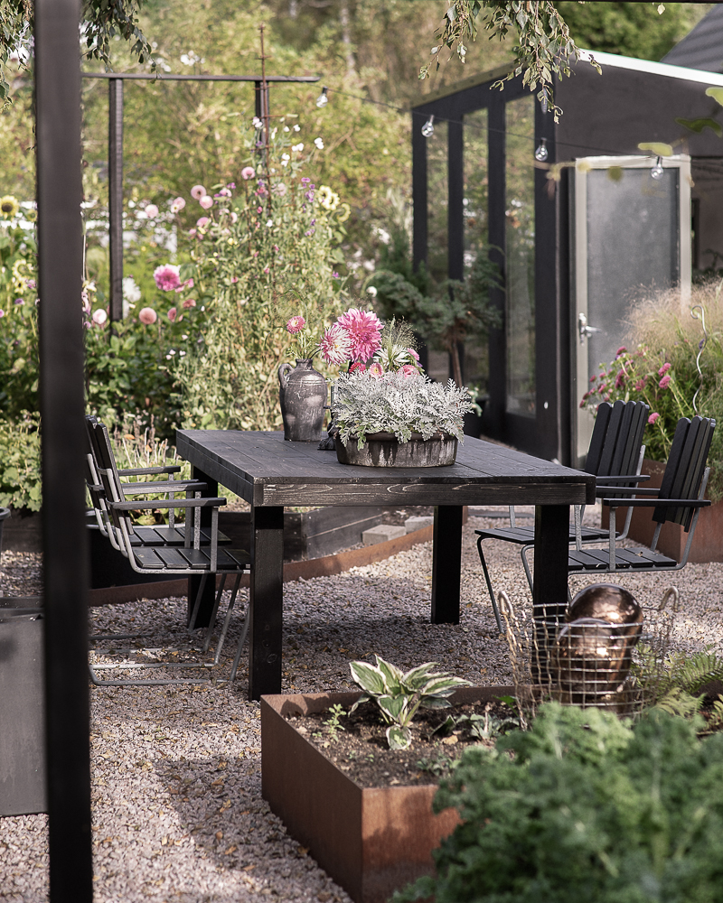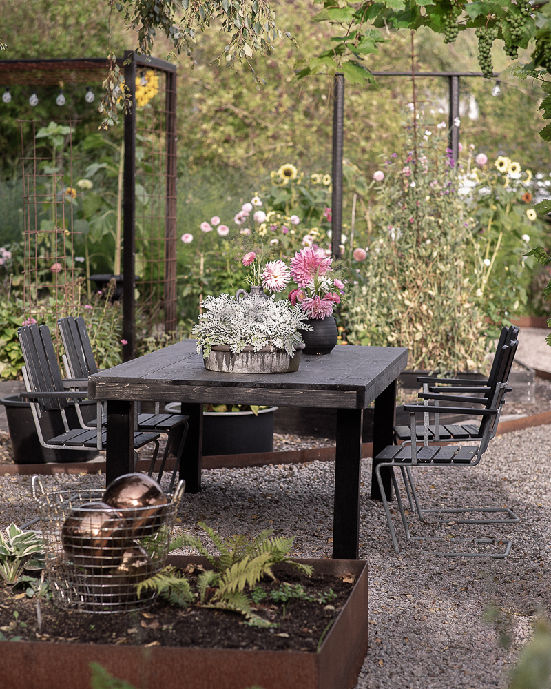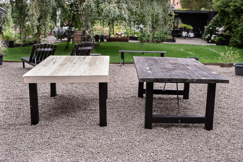Nu har vi två rejäla bord som vi antingen kan ha som ett stort långbord eller var för sig i trädgården.