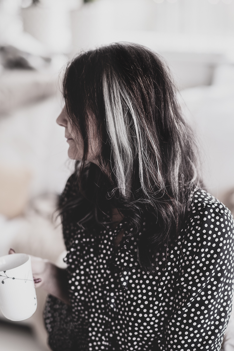 Men när jag väl hade bestämt mig fanns det inget att tveka på, jag ville omfamna mitt gråa hår, att mitt hår skulle må så bra som möjligt och om det får mig att se ut som mina 54 år så vad?