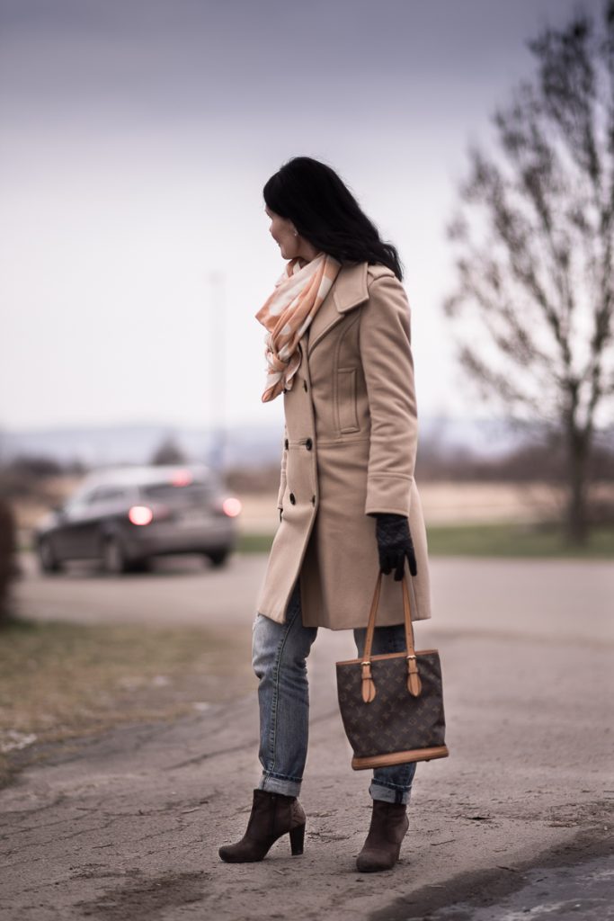 Jag matchar den med en sjal från by Malene Birger och en Louis Vuittonväska (vintage) och känner mig sådär en aningens city-chic….