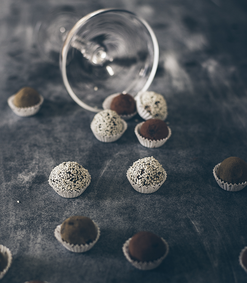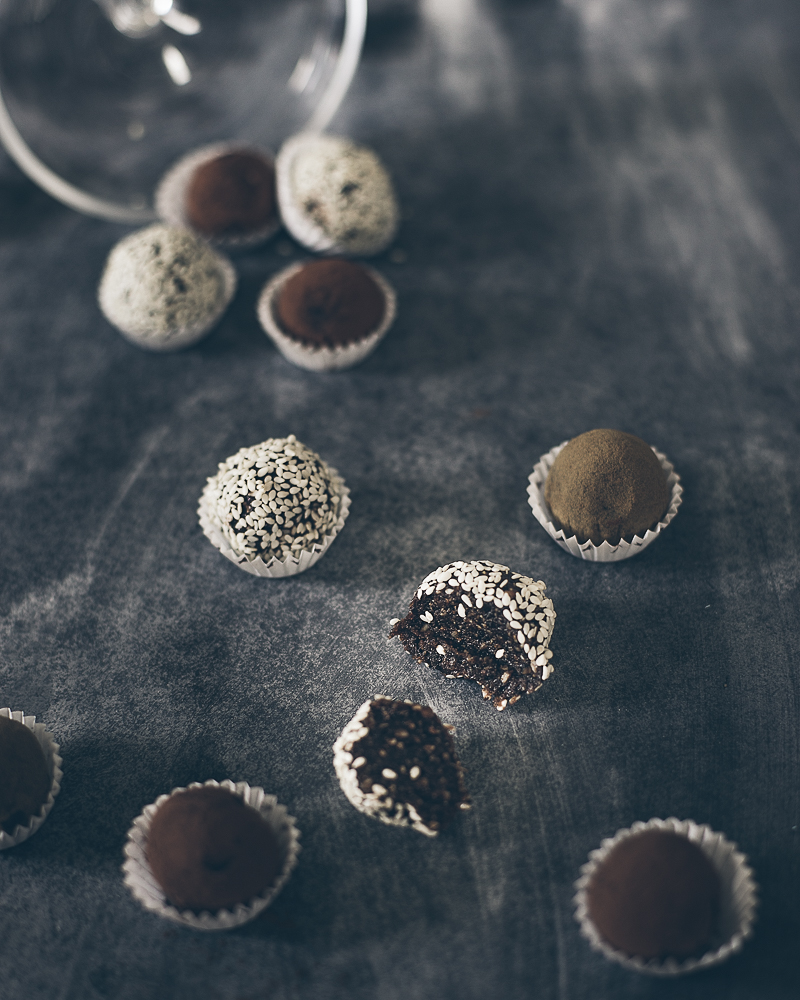 • Kakao, lakritspulver och sesamfrön att rulla bollarna i